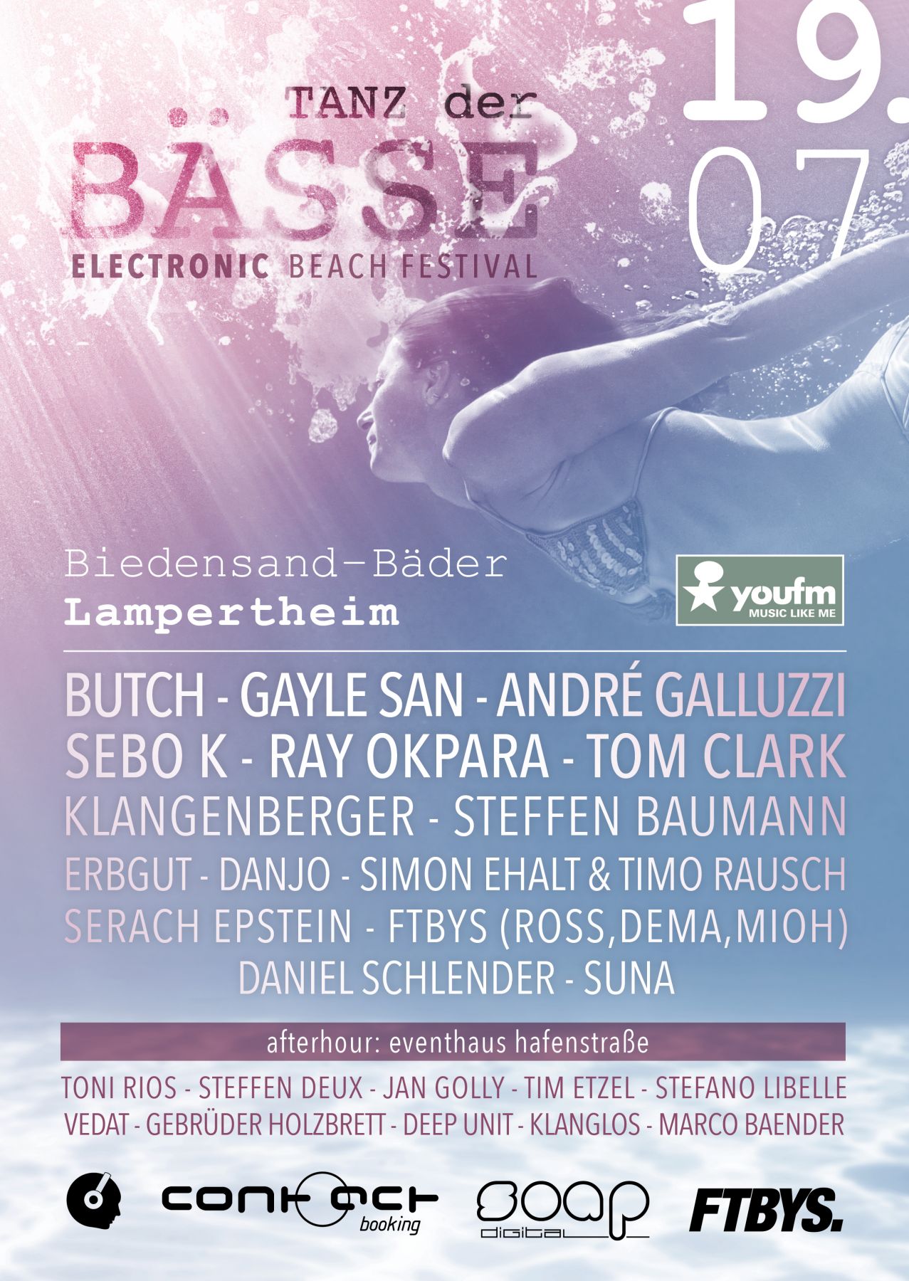 Neben unseren beiden open air floors mit regionalen und internationalen Künstlern könnt ihr natürlich wieder sämtliche Attraktionen der Lampertheimer Biedensandbäder mit zwei Pools, Badesee, Wasserrutsche und endlosen Liegewiesen nutzen.